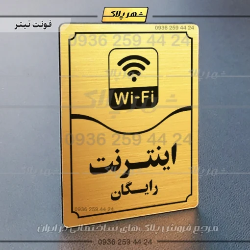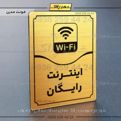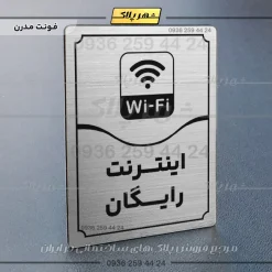 “تابلو مولتی اینترنت رایگان” بصورت عمودی است و فرم مستطیل دارد؛ متن این پلاک به زبان فارسی در قسمت پایین و نشانک متن در بخش بالا قرار دارد؛ و یک خط منحنی متن و نشانک را از یکدیگر جدا کرده است.