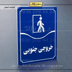 “تابلو مولتی خروجی جنوبی” بصورت عمودی است و فرم مستطیل دارد؛ متن این پلاک به زبان فارسی در قسمت پایین و نشانک متن در بخش بالا قرار دارد؛ و یک خط منحنی متن و نشانک را از یکدیگر جدا کرده است.