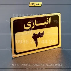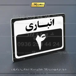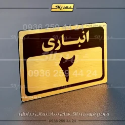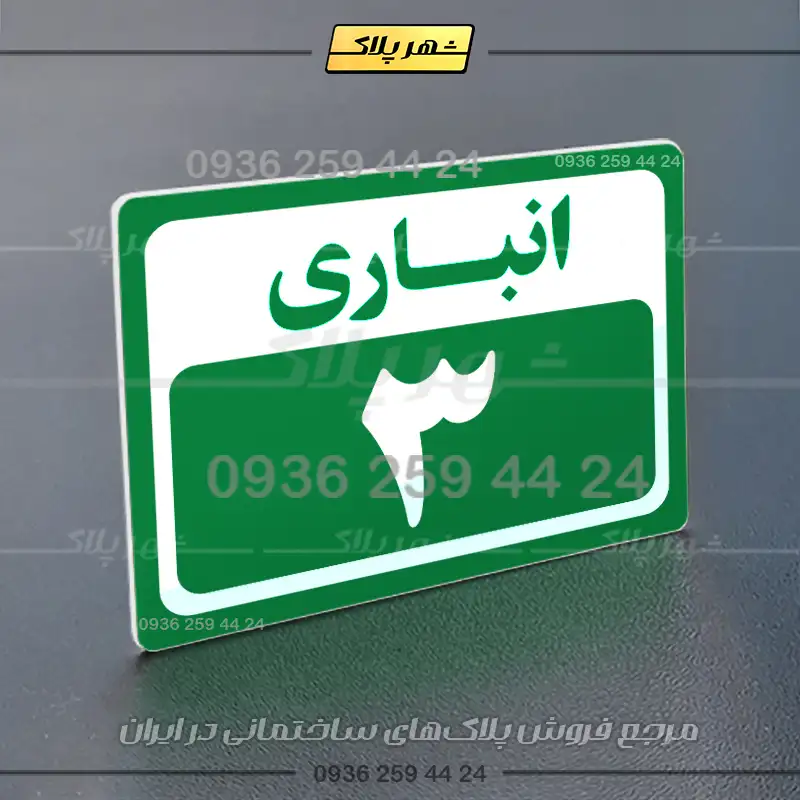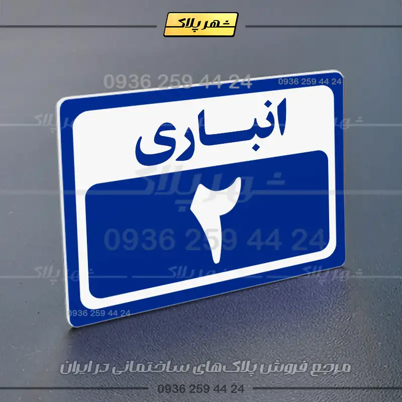 “پلاک انباری 1” بصورت افقی است و فرم مستطیلی دارد؛ عبارت انباری در بخش بالا و شماره این پلاک نیز به زبان فارسی در بخش پایین نوشته شده است.