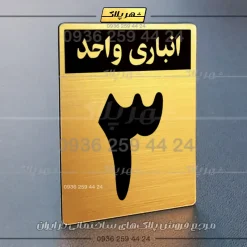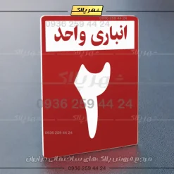 “پلاک انباری 22” بصورت عمودی است و فرم مستطیلی دارد؛ عبارت انباری واحد در یک کادر مستطیل شکل به زبان فارسی در بخش بالا و شماره انباری نیز به زبان فارسی در بخش پایین نوشته شده است.