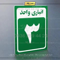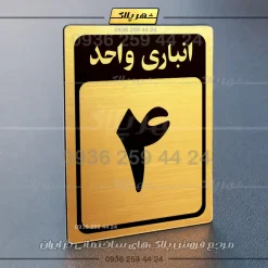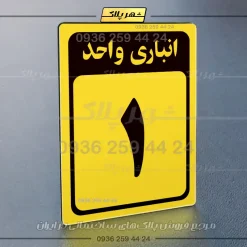 “پلاک انباری 40” بصورت عمودی است و فرم مستطیلی دارد؛ عبارت انباری واحد در یک کادر نواری در بخش بالا به زبان فارسی و شماره انباری نیز در بخش پایین به فارسی نوشته شده است.