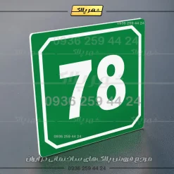 “پلاک شماره واحد 43” فرم مربعی دارد. این پلاک یک کادر با لبههای پخشده دارد و شماره واحد در این پلاک به زبان انگلیسی نوشته شده است.